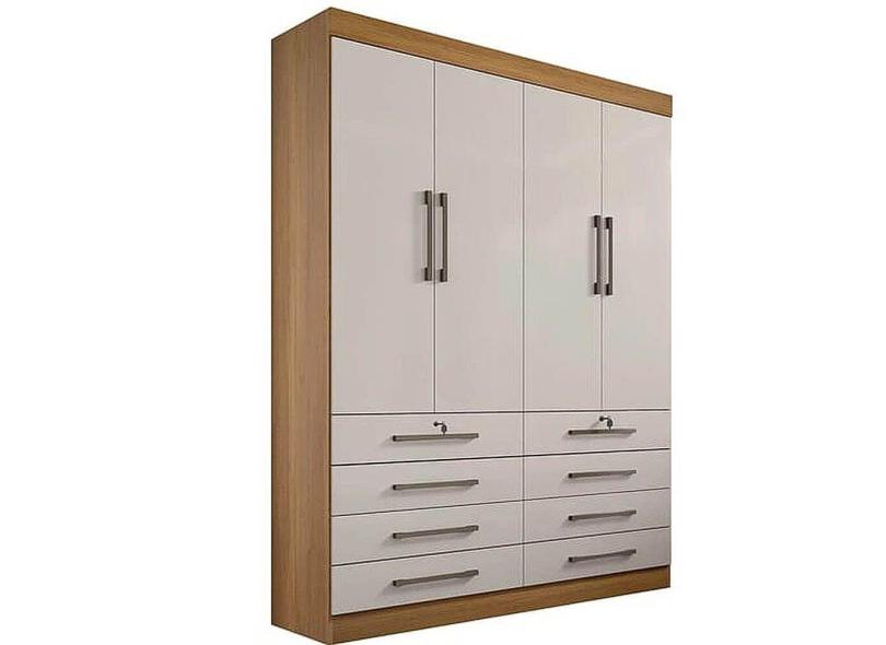 Guarda Roupa Monaco Solteiro 4 Portas 6 Gavetas D Doro Cor Cinamomo Off White