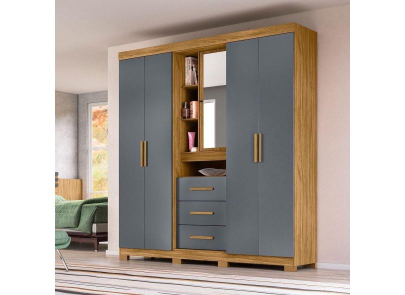 Guarda Roupa Moval Eldorado Freijó Cinza 4 Portas 3 Gavetas com Espelho