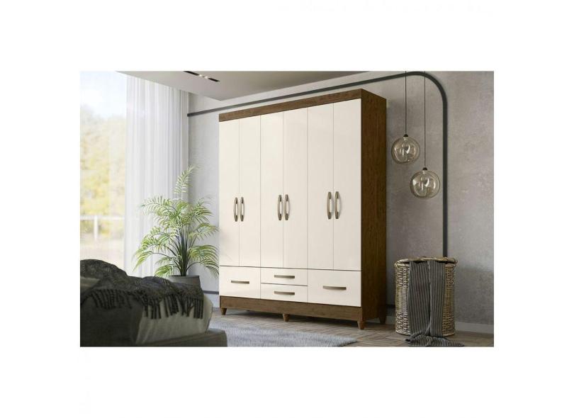 Guarda Roupa Moval Ibiza 6 Portas 4 Gavetas Com Pés Em Pvc Castanho Wood/Off White