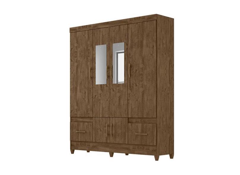 Guarda Roupa Ms912 165cm 6 Portas Castanho Wood Com Espelho Moval