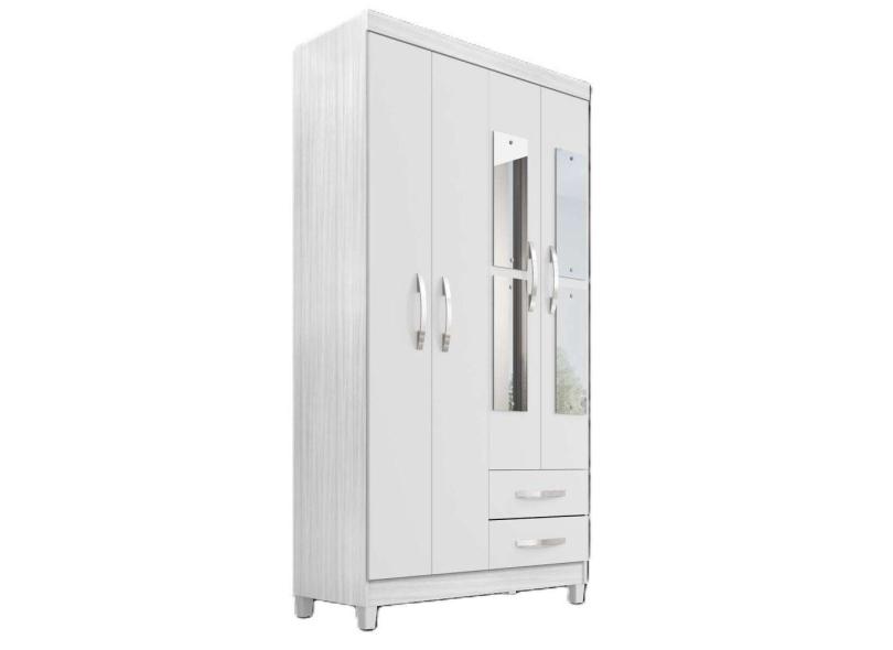 Guarda Roupa Munique 4 Portas Com 2 Gavetas Com Espelho Cor Carvalho E Branco - Incorplac