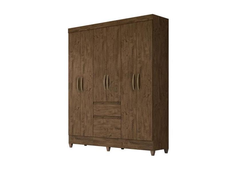 Guarda Roupa New Cuba 162cm 6 Portas Castanho Wood Moval