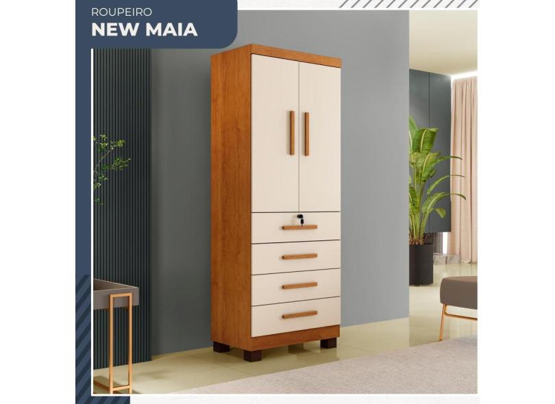 Guarda Roupa New Maia 2 Portas 4 Gavetas Com Chave Benetil Móveis