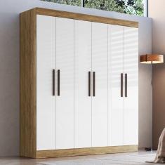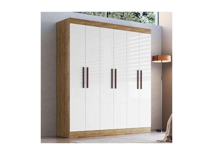 Guarda-roupa New Xangai 6 Portas 2 Gavetas Internas Off White/Nogueira