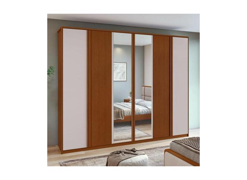 Guarda-roupa Ollie 6 Portas 6 Gavetas 6 Prateleiras com Espelho Frassino/off White