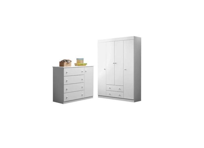 Guarda-Roupa Para Quarto Infantil Com 4 Portas E 2 Gavetas Branco - Ph