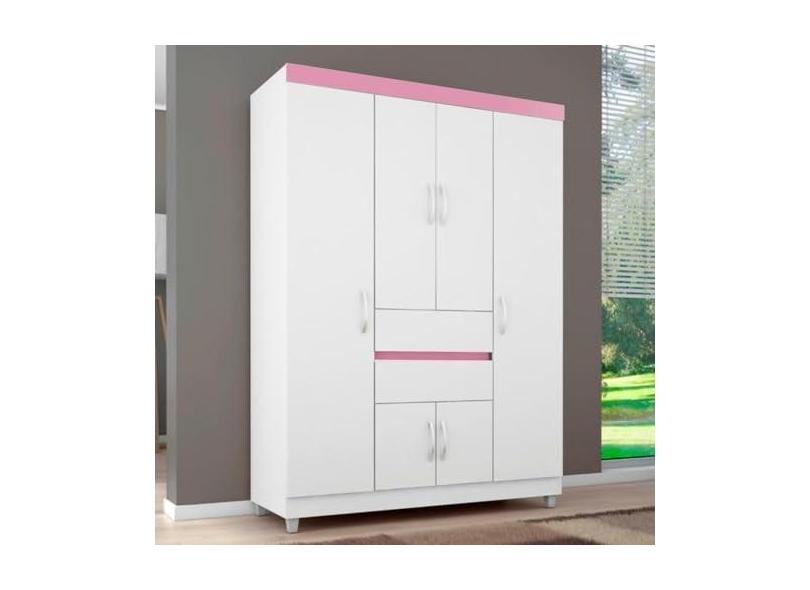 Guarda Roupa Pescara Branco/Rosa/Branco