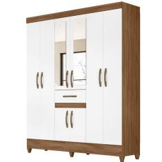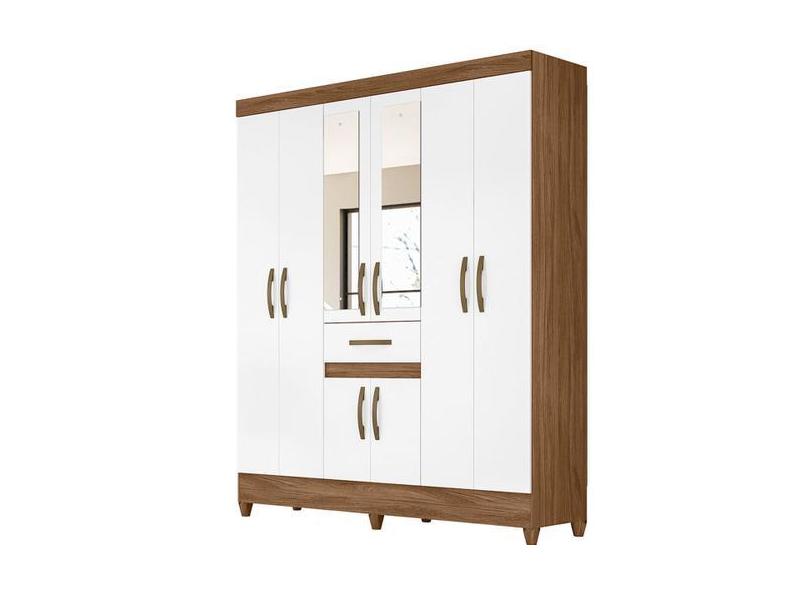 Guarda Roupa Portugal 165cm 8 Portas Naturale Branco Com Espelho Moval