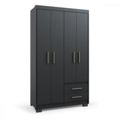Guarda Roupa Primacy 4 Portas 2 Gavetas Preto Fosco Batrol