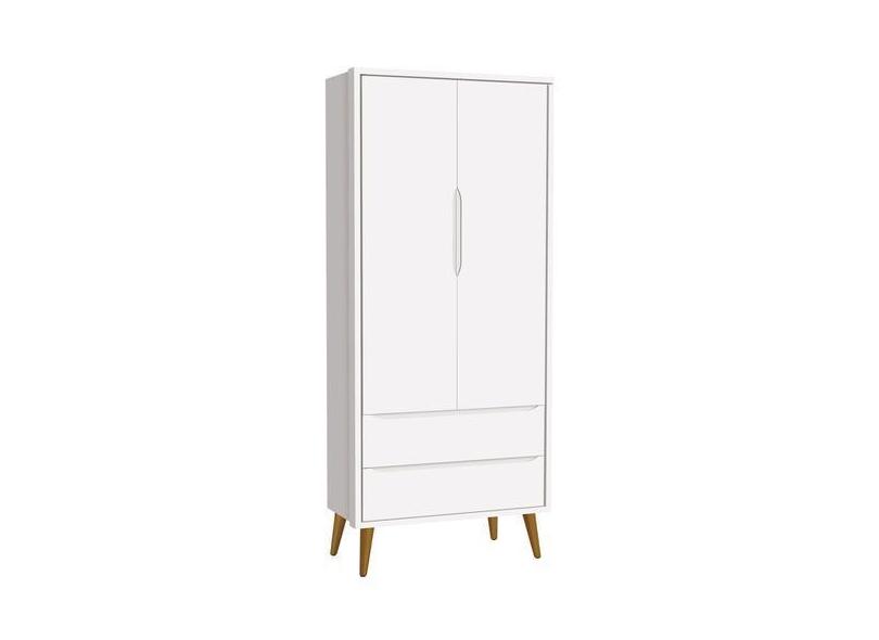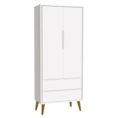 Guarda-Roupa Retrô 2 Portas Théo New Branco Fosco Com Madeira - Moveis