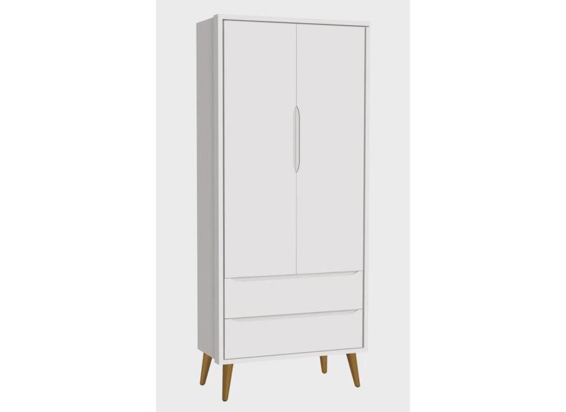 Guarda-Roupa Retrô 2 Portas Théo New Branco Fosco com Madeira - Reller