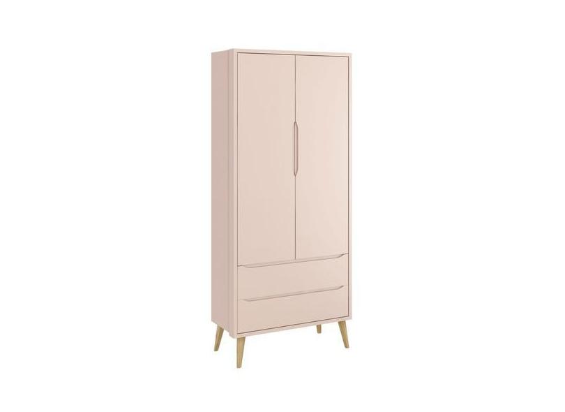 Guarda-Roupa Retrô 2 Portas Théo New Rosa Fosco Com Natural - Moveisaq