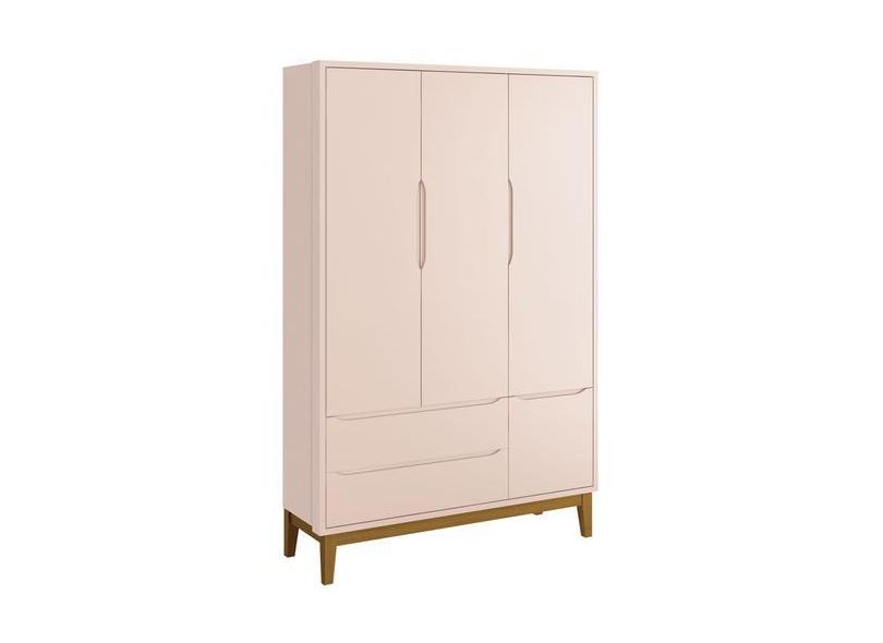 Guarda-Roupa Retrô 3 Portas Classic New Rosa Fosco com Madeira - Relle