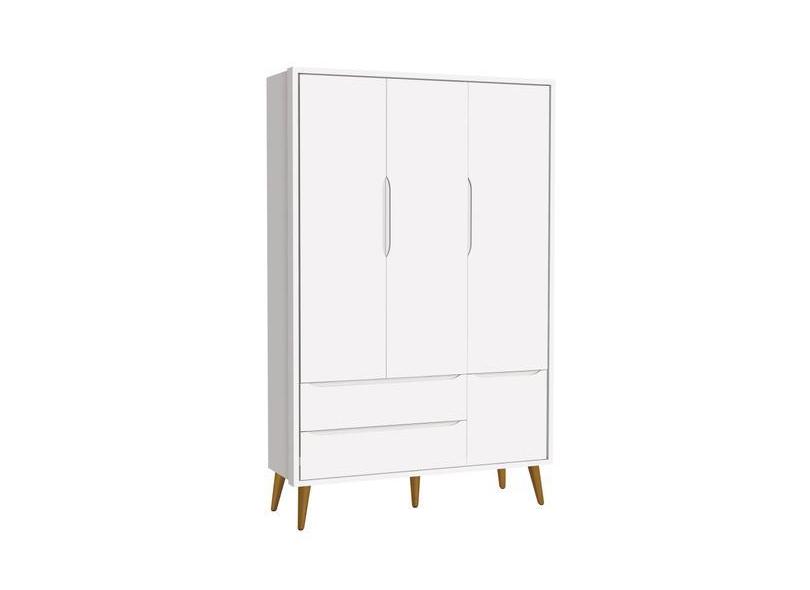 Guarda-Roupa Retrô 3 Portas Théo New Branco Fosco Com Madeira - Moveis