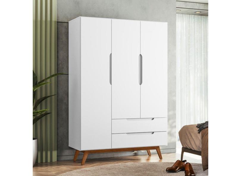 Guarda Roupa Retro Alpi 3 Portas 2 Gavetas Branco - Olivar Móveis