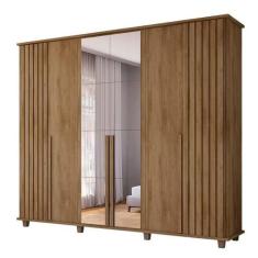 Guarda Roupa Ripado Casal 6 Portas 240cm Com Espelho França Rv Móveis Cinamomo/off White