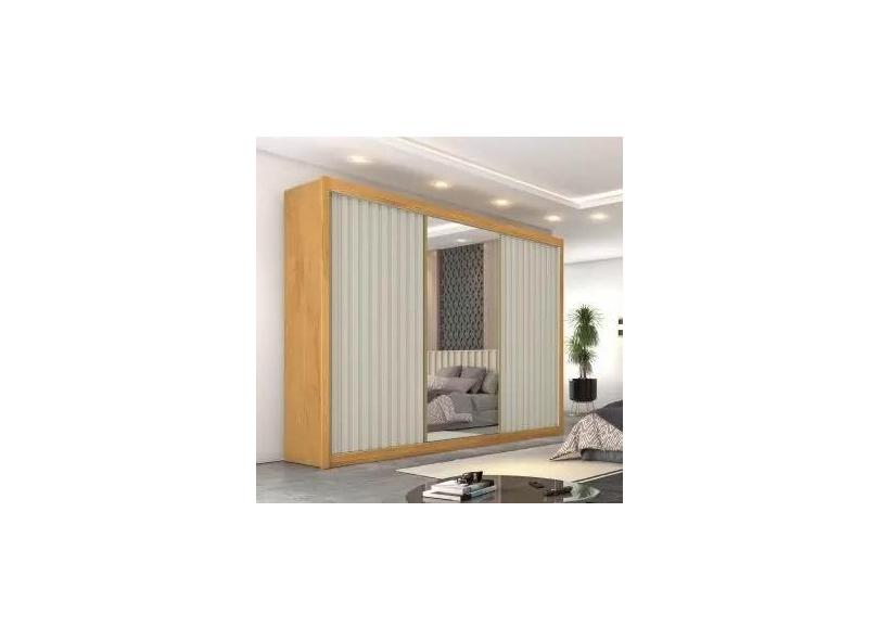 Guarda Roupa Ripado com Espelho 3 Portas 6 Gavetas - Viena-Peroba/Off White - Móveis Europa