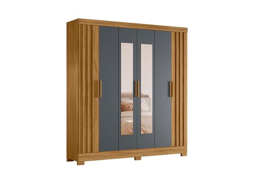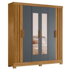 Guarda Roupa Ripado com Espelho Manila Feijó Cinza - CasaH