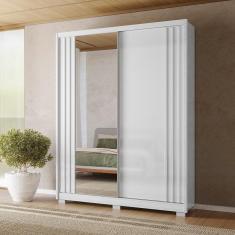 Guarda Roupa Roupeiro 02 Portas 03 Gavetas c/Espelho Colorado Branco Ripado Moval
