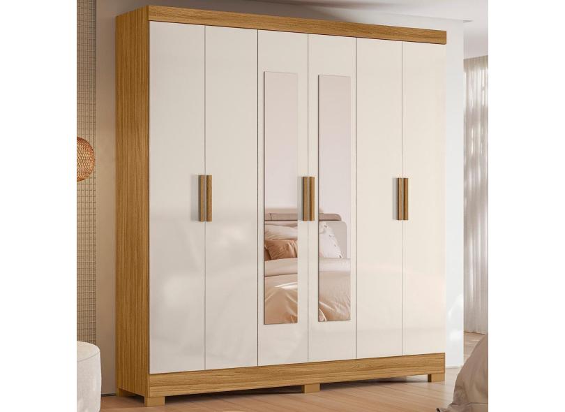 Guarda Roupa Roupeiro 06 Portas 02 Gavetas c/Espelho Valença Freijó Ripado Off White Moval