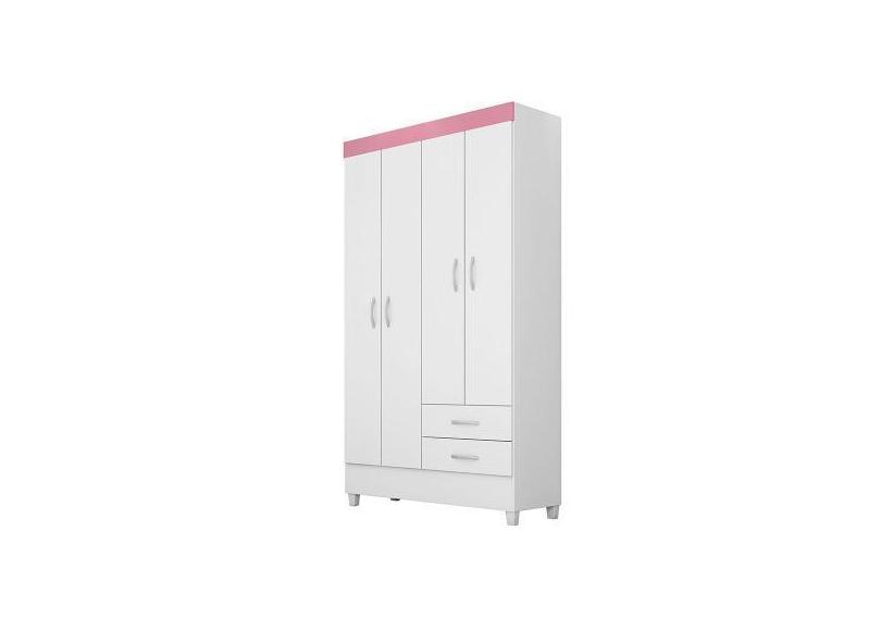 Guarda Roupa Roupeiro 4 Portas Júpiter Infantil/Juvenil Branco/Rosa -