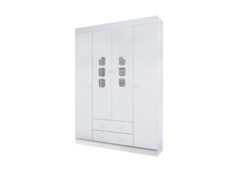 Guarda Roupa Roupeiro Aquarela 100% Mdf Infantil Branco 4 Portas Para