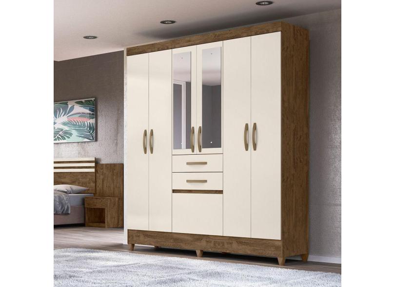 Guarda Roupa Roupeiro Casal New Mafra Castanho Off White 6 Portas 2 Gavetas c/ Espelho Moval