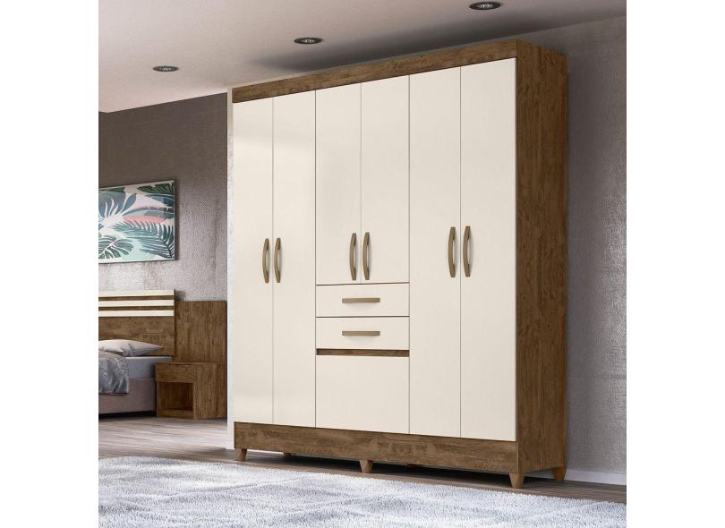 Guarda Roupa Roupeiro Casal New Mafra Castanho Off White 6 Portas 2 Gavetas Moval