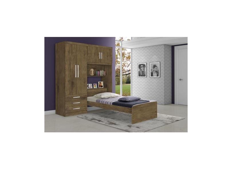 Guarda Roupa Roupeiro de Solteiro Marrom com Cama de Solteiro + Cabece