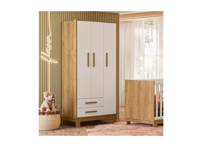 Guarda Roupa Roupeiro Infantil Qencanto Slim 4340 Qmovi Freijó Branco Acetinado