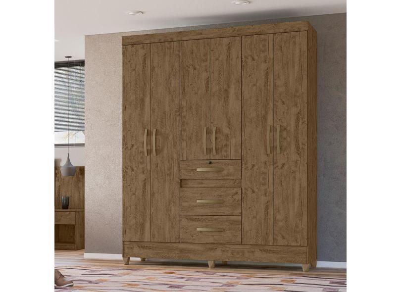 Guarda Roupa Roupeiro Itatiba Castanho Wood 6 Portas 3 Gavetas Moval