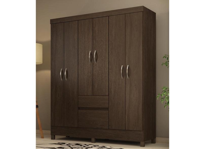 Guarda Roupa Roupeiro Solteiro 62920 06 Portas 02 Gavetas Flash ii Ebano Touch Demóbile