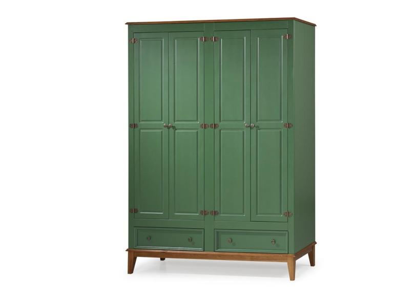 Guarda-Roupa Rústico 4 Portas e 2 Gavetas - Madeira Maciça e mdf - Verde