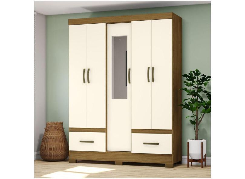 Guarda Roupa Solteiro 05 Portas 02 Gavetas B60 Briz Nature Com Off White