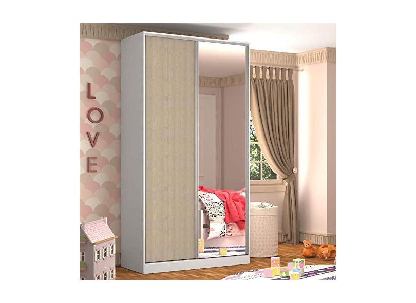 Guarda Roupa Solteiro 1 Espelho 2 Portas 3 Gavetas Nova Mobile Branco e Noce