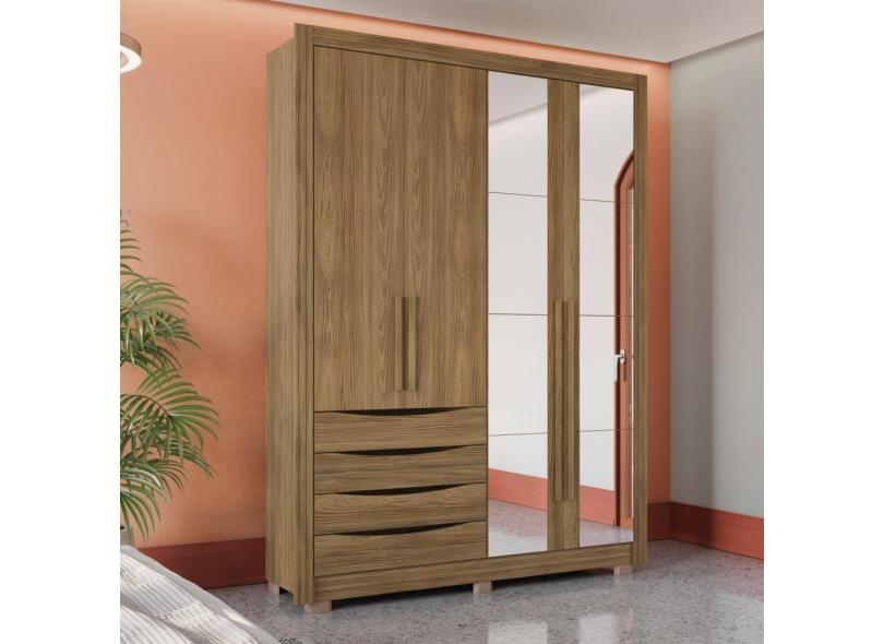 Guarda-Roupa Solteiro 100% MDF Kappesberg 8 Espelhos 4 Portas 4 Gavetas Nogueira
