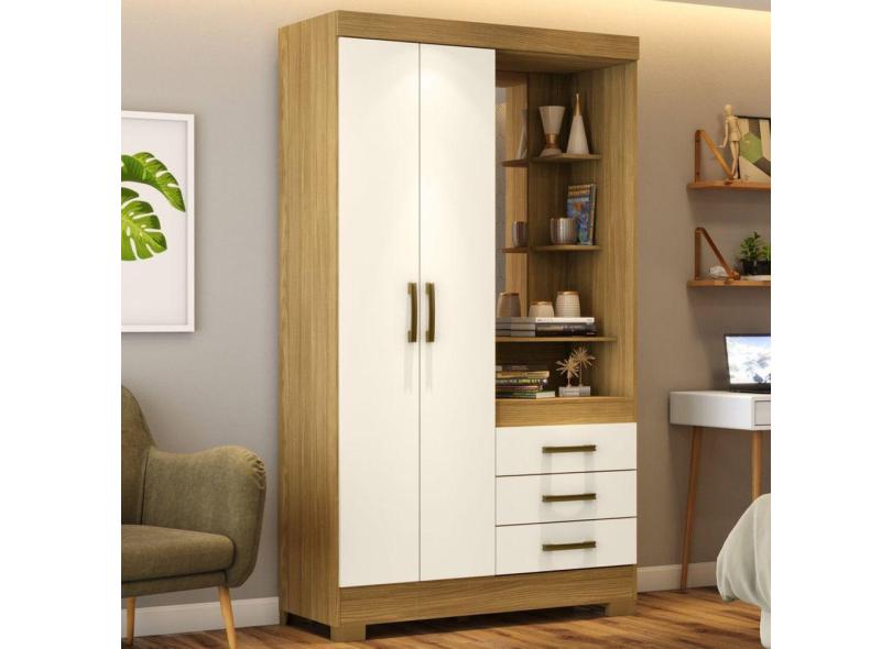 Guarda Roupa Solteiro 2 Portas 3 Gavetas Pequin Briz Marrom/Off White
