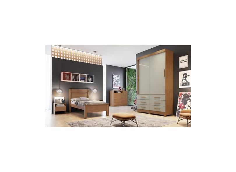 Guarda Roupa Solteiro 2 Portas 6 Gavetas - Buriti-Cumaru/Fendi - Móvei