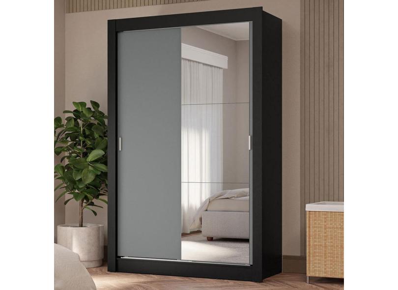 Guarda-roupa Solteiro 2 Portas Correr 4 Gavetas Preto/Cinza