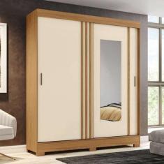 Guarda-roupa Solteiro 2 Portas de Correr 2 Gavetas com Espelho B353 Nature/off White/cinza