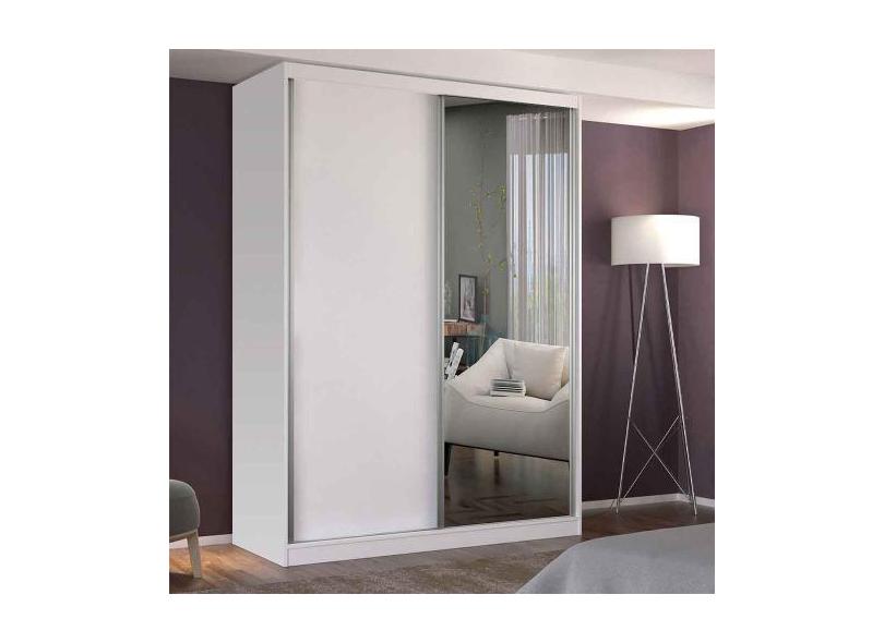 Guarda-Roupa Solteiro 2 Portas De Correr Com 1 Espelho Branco Foscarin