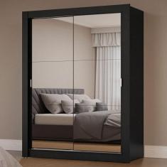 Guarda-Roupa Solteiro 2 Portas De Correr Com Espelhos Preto Milano Mad