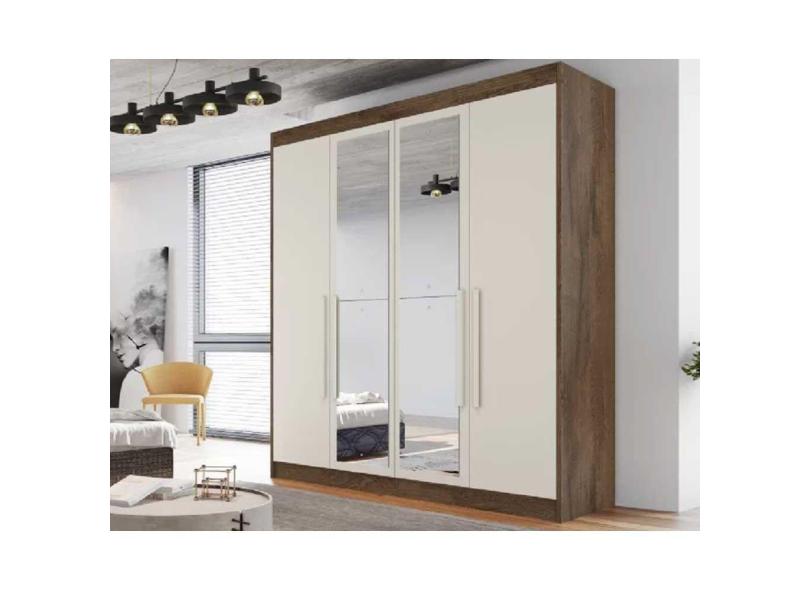 Guarda Roupa Solteiro 3 Gavetas e 4 Portas c/2 Espelho Nantes Braúna/Off White - Europa