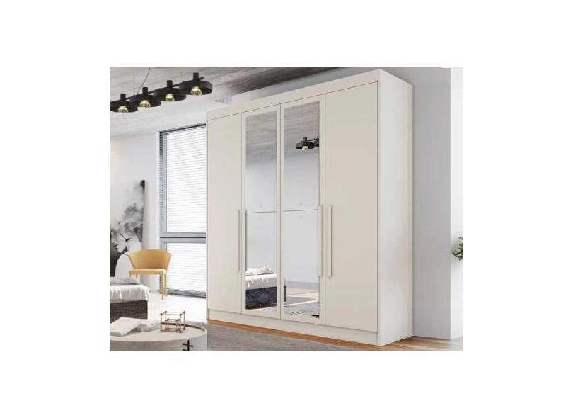 Guarda Roupa Solteiro 3 Gavetas E 4 Portas C/2 Espelho Nantes Off Whit