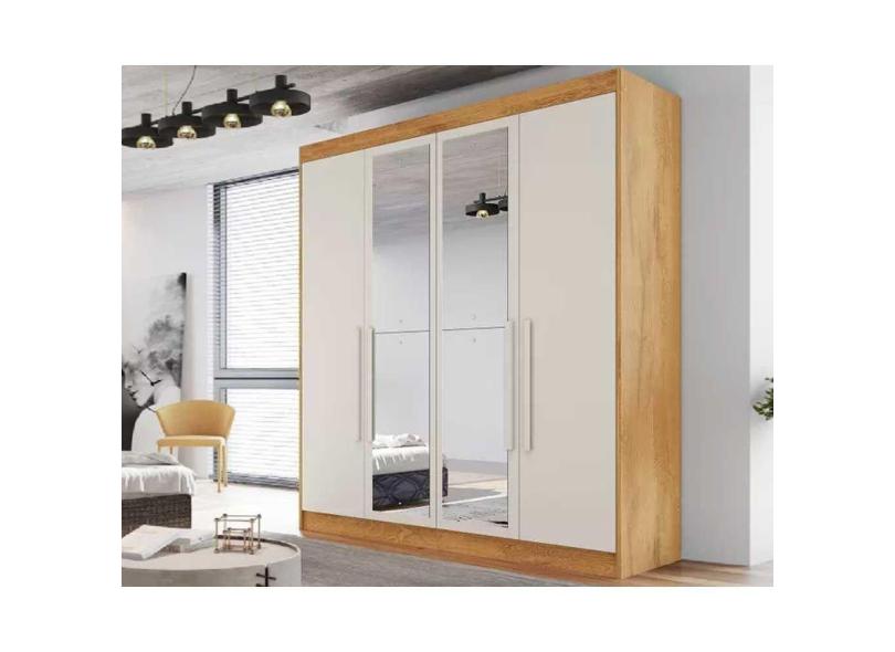 Guarda Roupa Solteiro 3 Gavetas E 4 Portas C-2 Espelho Nantes Peroba-off White - Europa