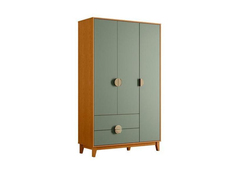 Guarda Roupa Solteiro 3 Portas 2 Gavetas 120cm Ipê Cinamomo/Sálvia - A
