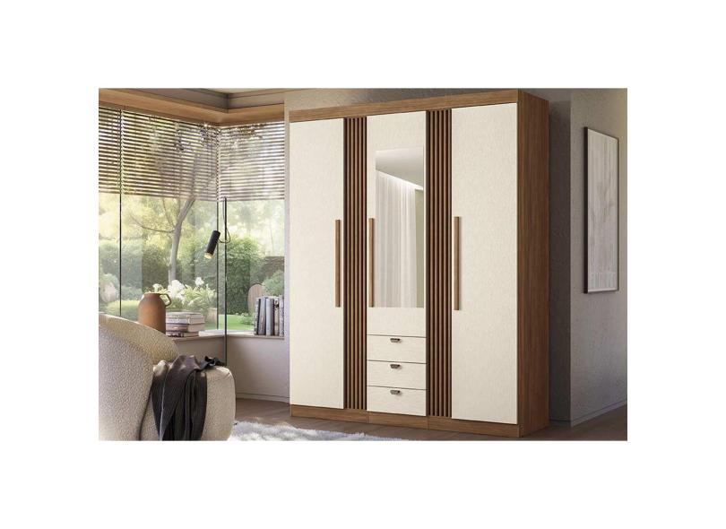 Guarda Roupa Solteiro 3 Portas 3 Gavetas C/ Espelho 3.3 Aurora Jatoba/Areia - Santos Andirá