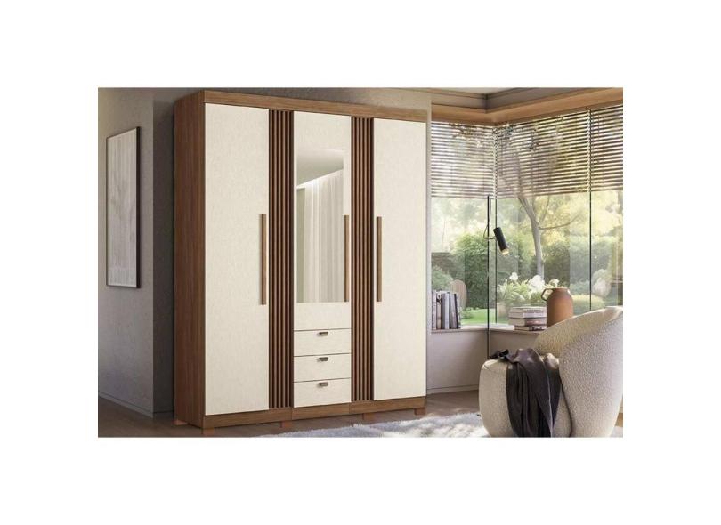 Guarda Roupa Solteiro 3 Portas 3 Gavetas c/ Espelho e Pés 3.3 Aurora jatoba/Areia - Santos Andirá