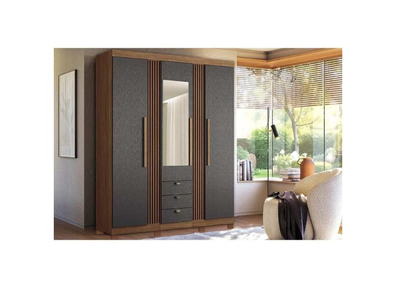 Guarda Roupa Solteiro 3 Portas 3 Gavetas c/ Espelho e Pés 3.3 Aurora Jatoba/Grafitte - Santos Andirá