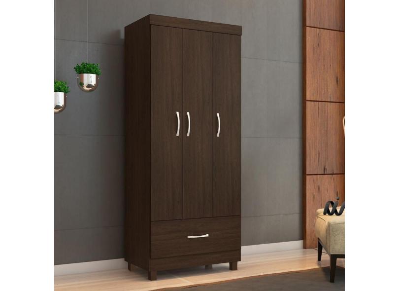 Guarda-Roupa Solteiro 3 Portas com Gaveta - 75 cm Ébano